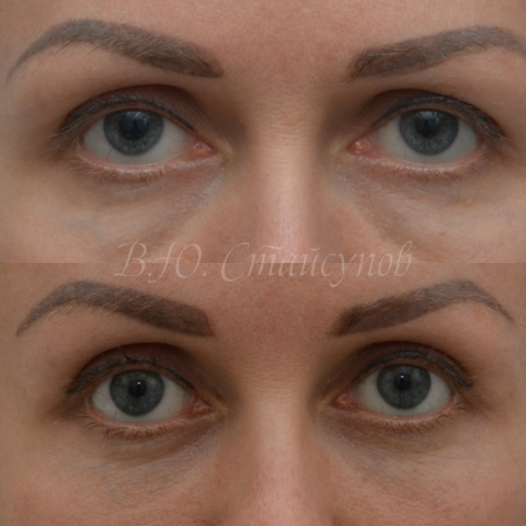 Нижняя блефаропластика часто сочетается с восстановлением объема и коррекцией контуров скуловой области. Неотъемлемые этапы успешной операции — перераспределение орбитального жира, заполнение слезной борозды. Удаление жировых грыж считается сегодня устаревшей и неэффективной методикой.