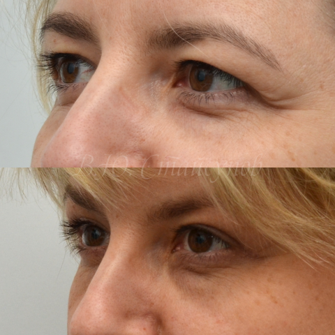 Нижняя блефаропластика часто сочетается с восстановлением объема и коррекцией контуров скуловой области. Неотъемлемые этапы успешной операции — перераспределение орбитального жира, заполнение слезной борозды. Удаление жировых грыж считается сегодня устаревшей и неэффективной методикой.