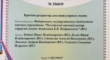 - «Крючок-ретрактор для папиллярных мышц» № 206049, 2021 г.