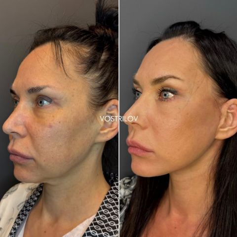 Подтяжка овала лица в средней трети может выполняться вместе с пластикой скул, по показаниям восполняется дефицит объема тканей. Ранее для этого использовали силиконовые эндопротезы, но сегодня чаще применяется липофилинг, основанный на пересадке собственных жировых клеток. Аутолипотрансплантация расширяет возможности омоложения средней трети лица. Метод позволяет добиваться эстетических результатов, которые трудно достичь с помощью только фейслифтинга.