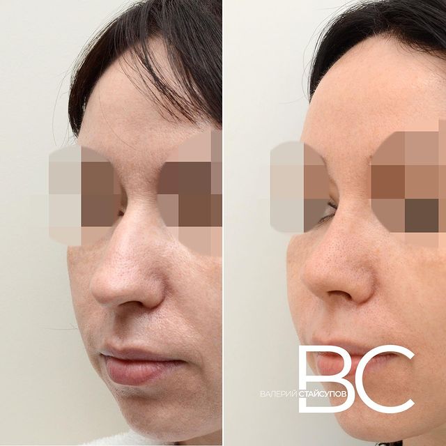 Закрытая ринопластика носа с толстой кожей. Было выполнено удаление небольшой горбинки, сужение спинки и кончика носа, небольшое укорочение носа, уменьшение ноздрей | Стайсупов Валерий Юрьевич Закрытая ринопластика носа с толстой кожей. Было выполнено удаление небольшой горбинки, сужение спинки и кончика носа, небольшое укорочение носа, уменьшение ноздрей | Ринопластика | Стайсупов Валерий Юрьевич -